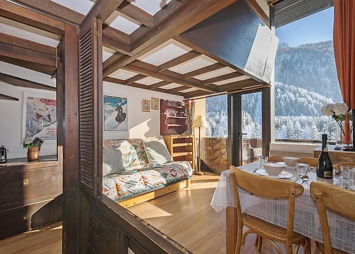 Résidence Grand Roc - Campanules 415 - Happy Rentals Chamonix, di 38 m^2, situato a 2 km di distanza da una famosa attrazione di intrattenimento come il Colle des Montets, offre comfort moderni come un ascensore. Gli ospiti possono arricchire il loro soggiorno con attività come sci sulla neve e sci.